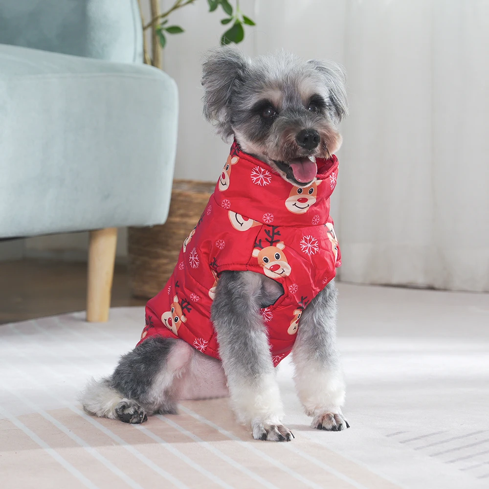 Warm Dog Clothes For Small Medium Dogs Cats Autumn Winter Windproof Christmas Print Puppy Jacket Schnauzer Yorkshire Pet Coat